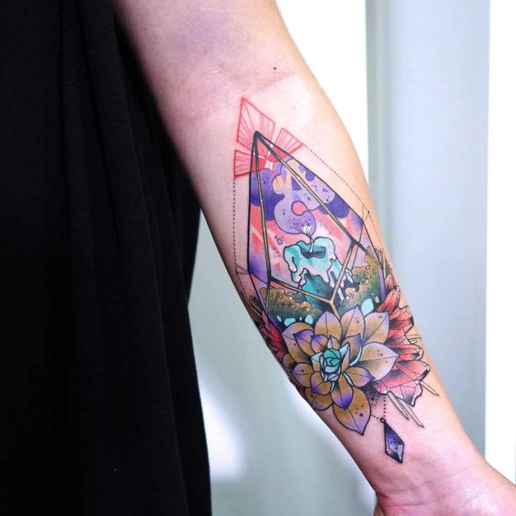 Символ любви, романтики и нежности в виде сердца все чаще девушки выбирают в качестве рисунка для тату на предплечье. Причем вовсе не обязательно делать классический вариант. Отлично смотрится сердце в виде кристаллов или же в геометрическом стиле. Проявляйте свою фантазию в создании эскиза и тогда рисунок будет уникальным.