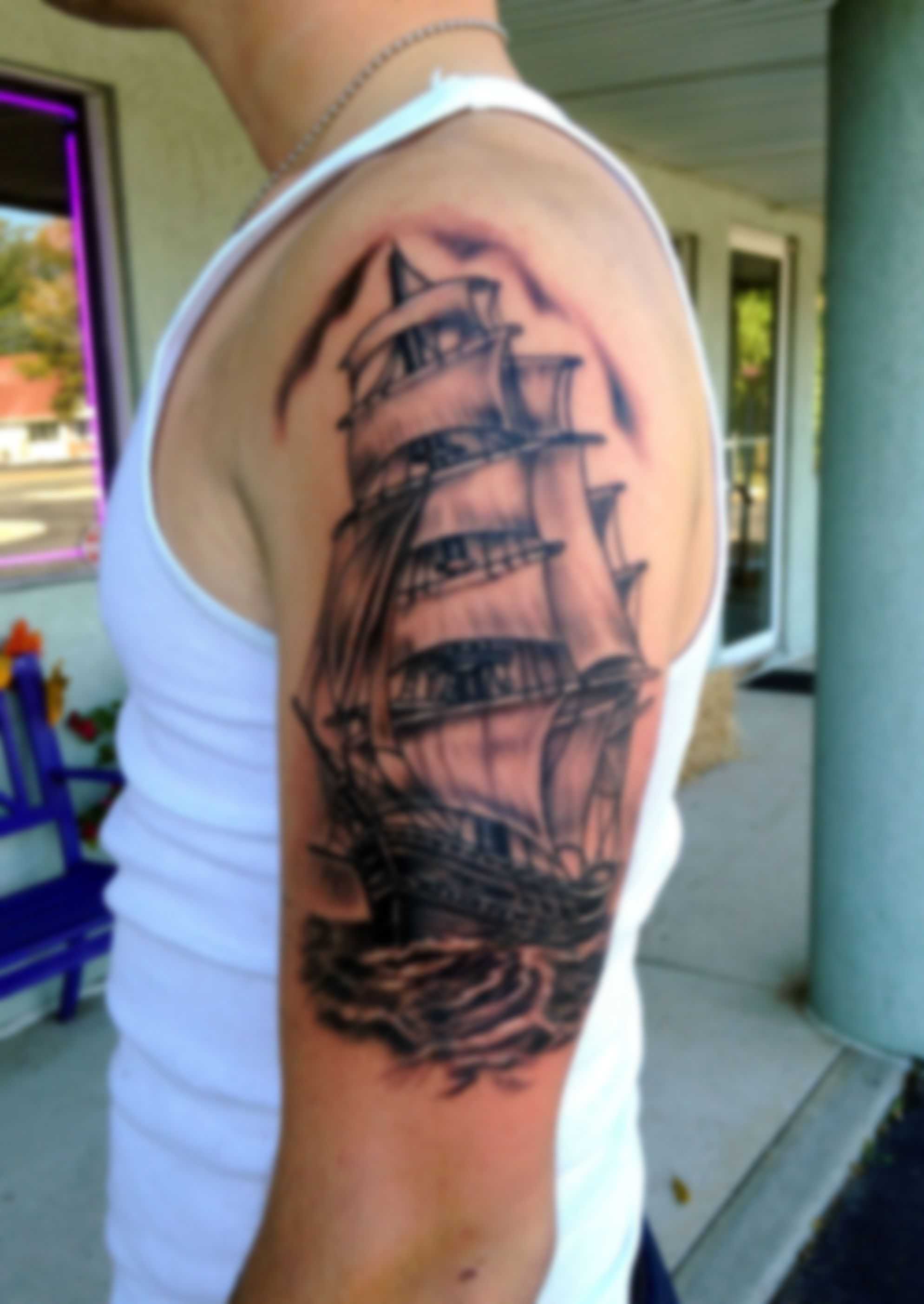 Поднятые паруса изображенного корабля символизируют достаток, счастливые перемены и поиск лучшей жизни для себя. Такой рисунок очень подойдет творческому мужчине. Значение тату — желание двигаться, самоопределение.
