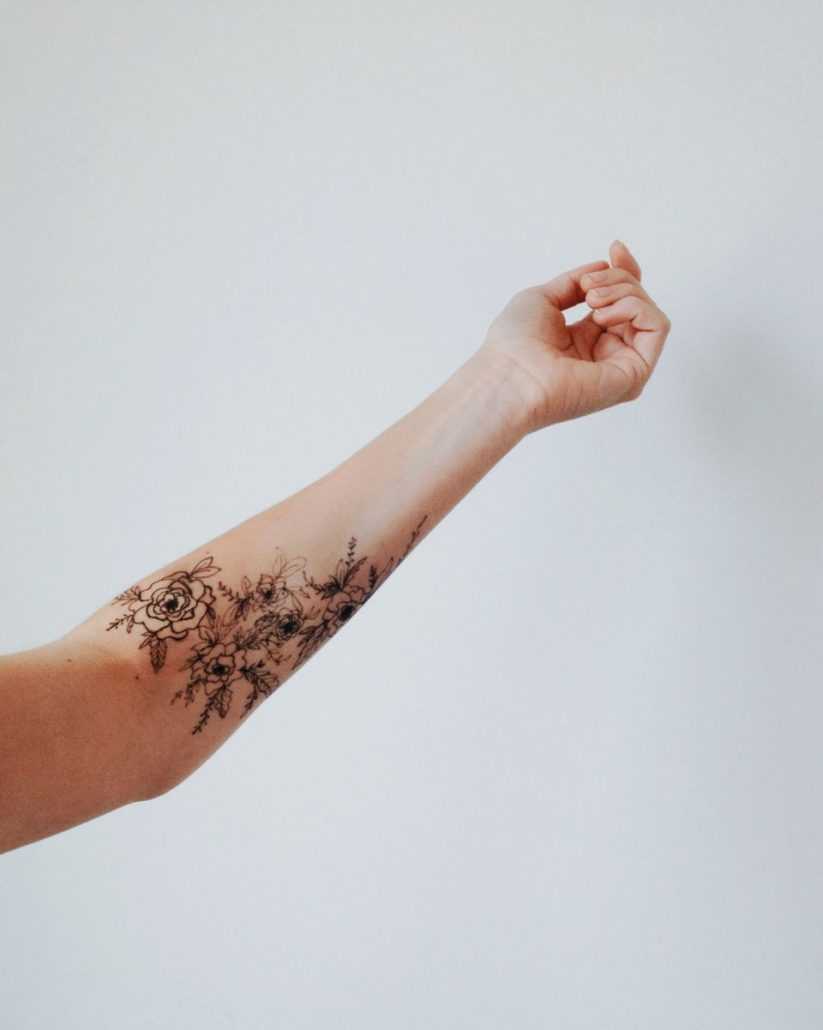 Татуировка на предплечье, фото которой достаточно разнообразны, украсит как девушек, так и парней. Например, среди представительниц прекрасного пола популярны утонченные изображения: цветы, птицы, нежные орнаменты. Их удобно располагать на зоне предплечья. Такие эскизы выигрышно смотрятся, когда изображение удлиненно вверх.
