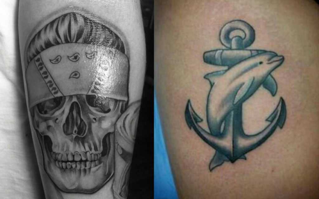 Морская тематика популярна в первую очередь у моряков. Изображение судна предохраняло от кораблекрушений, якорь оберегал от смерти, дельфин считался символом удачи в мореплавании.