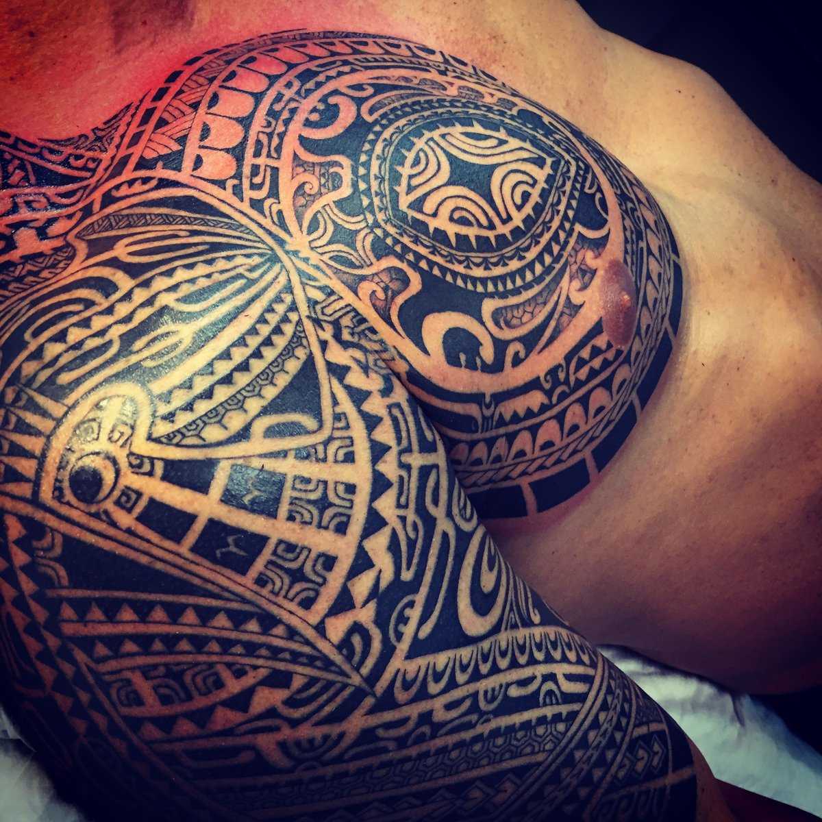 - Полинезия – татуировки, зачастую используемые племенами. Показывают окружающим, к какому роду принадлежит мужчина, его род деятельности и жизненные достижения. К этому виду изображений нужно отнестись серьезно, для жителей тихоокеанских островов они имеют большое значение.