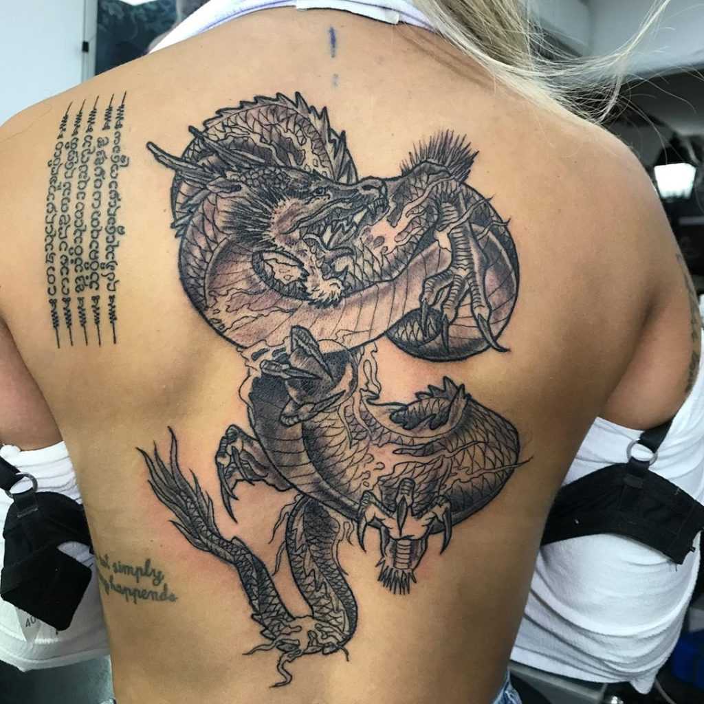 Красивое тату дракона на спине можно увидеть у многих мужчин и женщин. Этот таинственный персонаж мифологии встречается у многих народов. Он стал частью традиционных сюжетов для японских и ориентал-татуировок. Ведь для Японии и Китая, а также людей, уважающих восточные культуры, драконы имеют особое значение. Самая большая в мире татуировка – также именно дракон.