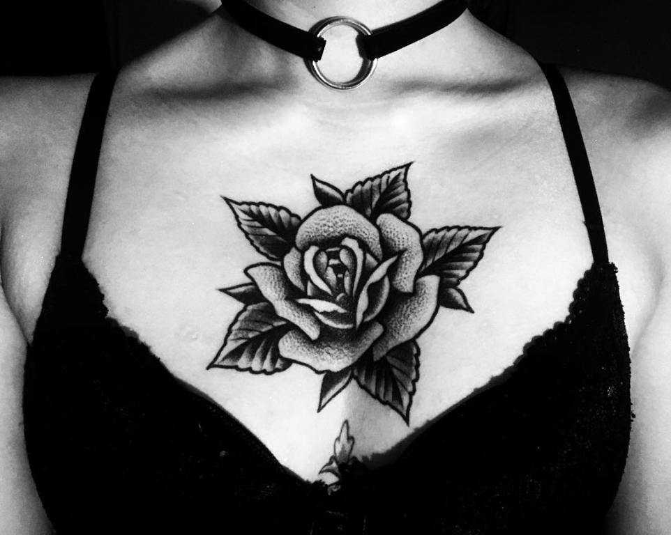 Распространенным заблуждением является то, что татуировки на груди предназначены только для мужчин. И зря: женское тату на груди смотрится очень эффектно, сексуально и придает особый шарм своей владелице.
