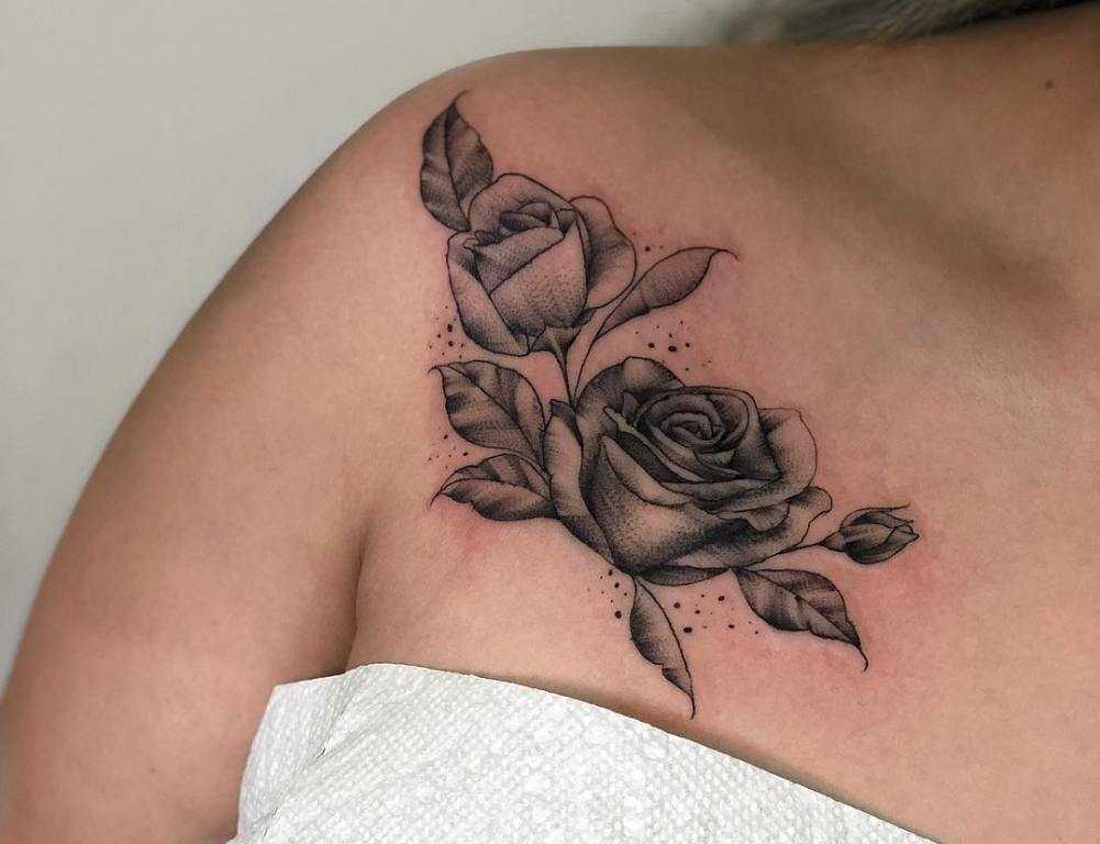 Эффектный и беспроигрышный вариант – плечо. Красиво смотрятся мелкие розочки на таких местах, как запястье или кисть. Нога – довольно популярное место для нанесения данного изображения. Причем мужчины предпочитают изображать розу на икрах ног, а девушки выбирают более пикантное место. На бедре может быть нанесен одиночный цветок, или имитация соблазнительной подвязки с миниатюрными цветочками.