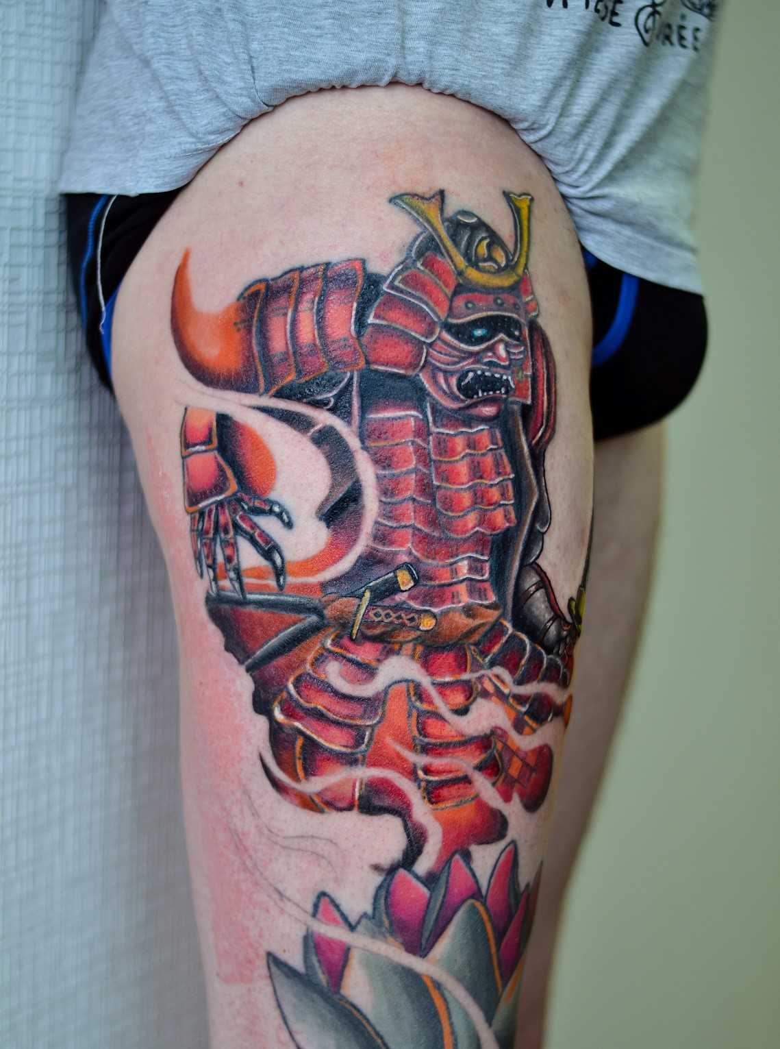 Тату на бедре парня – самурай