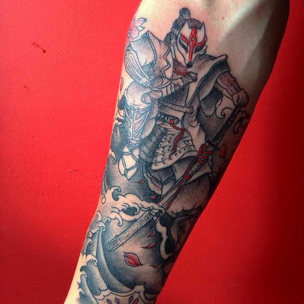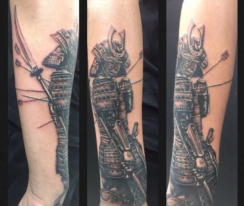 Тату самурай на руке может выступать в качестве своеобразного талисмана-оберега. Его предпочитают мужчины с опасными и рискованными профессиями, считается, что рисунок помогает защитить человека от неприятностей и катастроф.