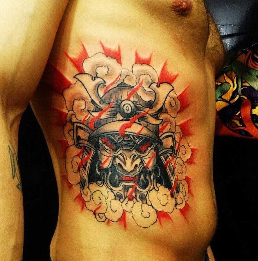 Тату на боку у парня – самурай