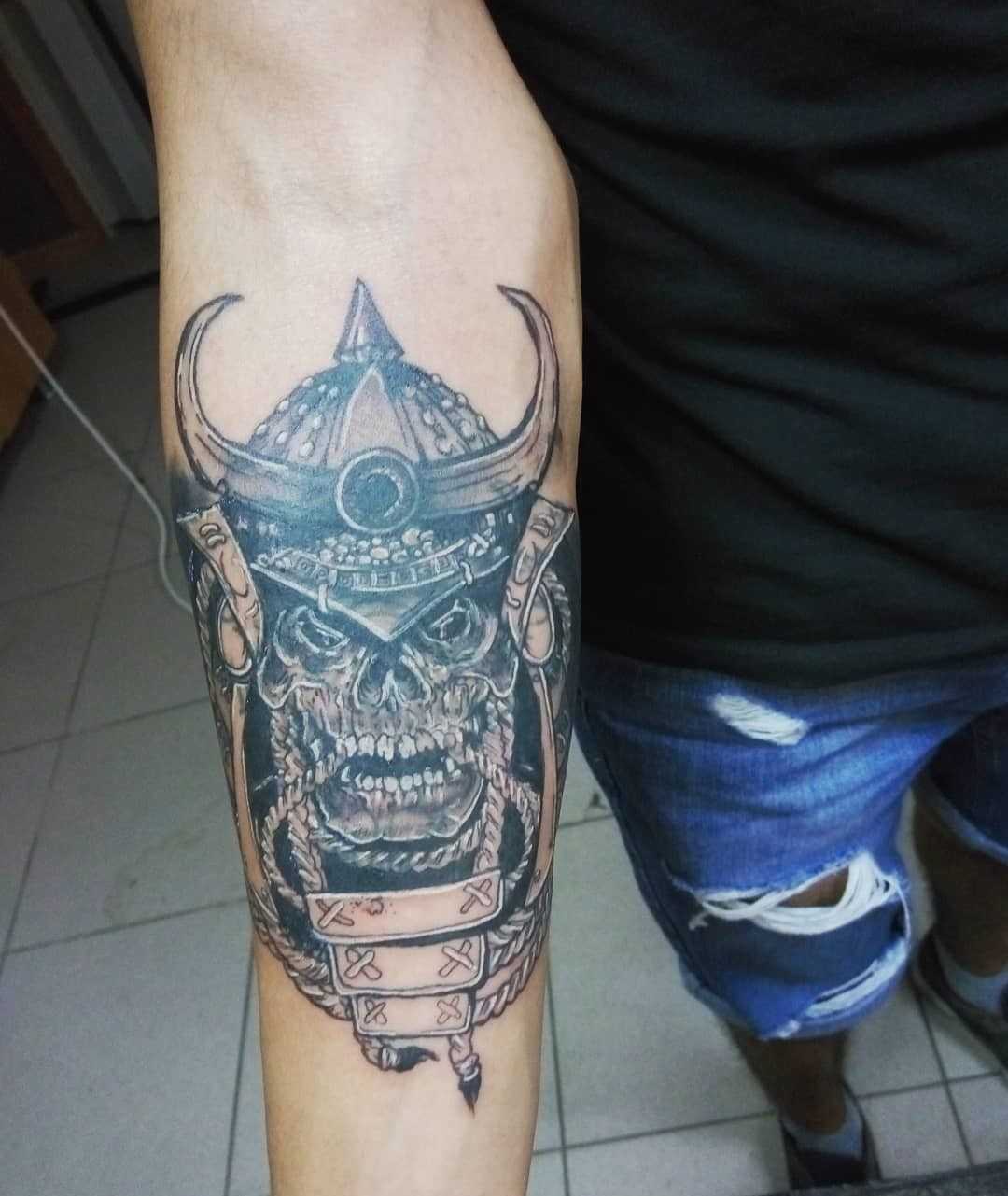 Тату самурай на предплечье парня
