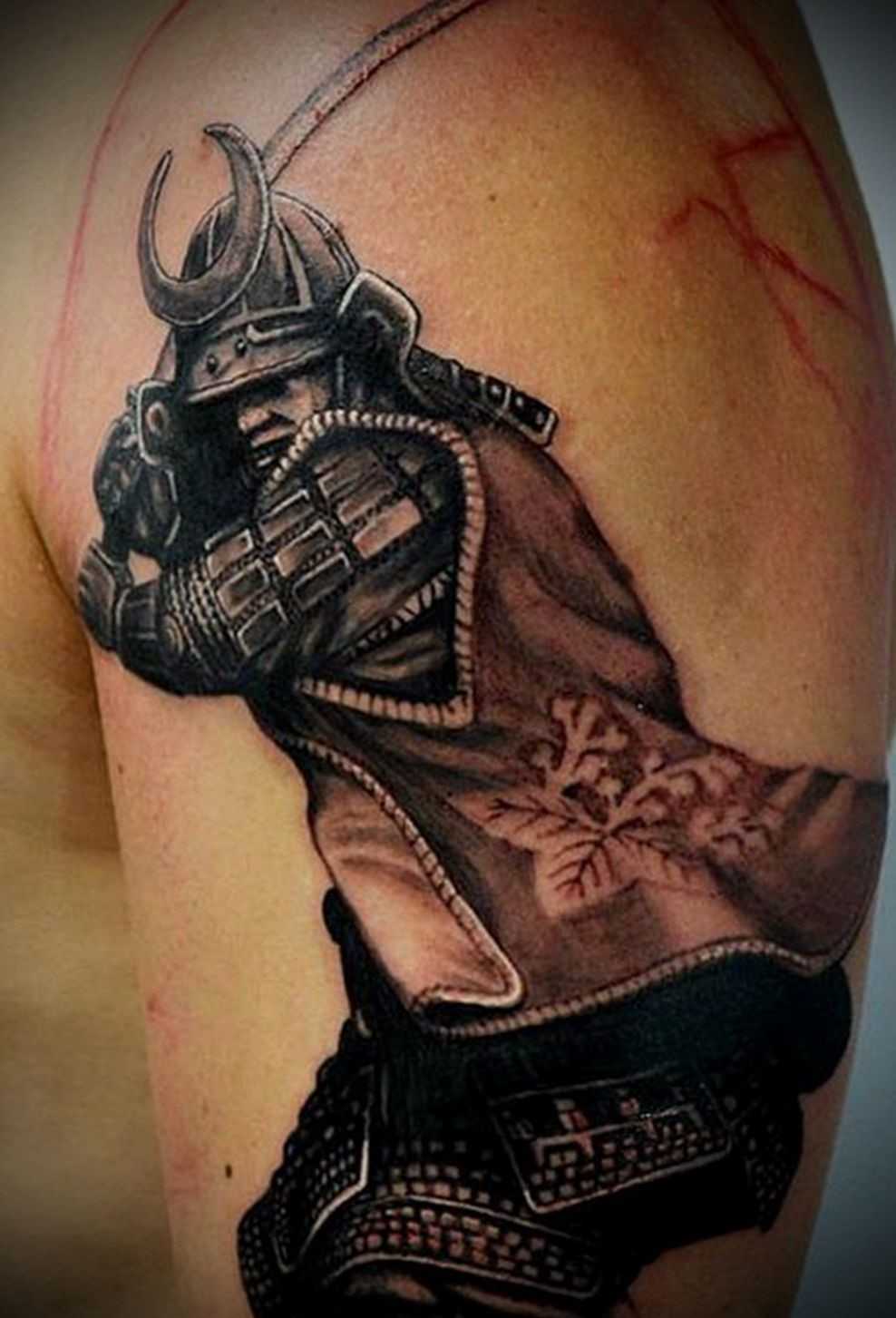 Тату самурай на плече парня