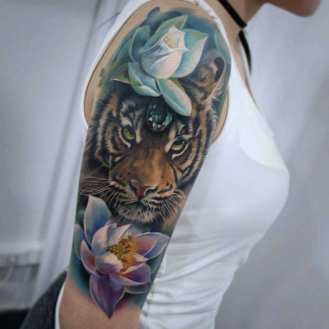 Девушек, напротив, привлекает внешняя красота тигра, его неординарная внешность и воинственная грациозность. Прекрасный пол зачастую выбирает тату с изображением тигрицы или маленького милого тигренка, тем самым выражая свою смелость, неординарность, умение постоять за себя, а при необходимости даже выпустить коготки, несмотря на то, что эта кошечка кажется мягкой и безобидной.