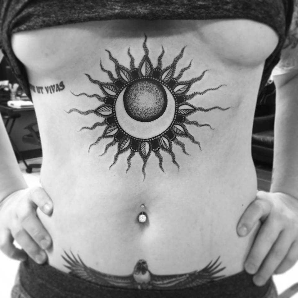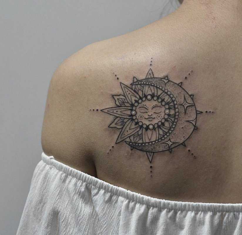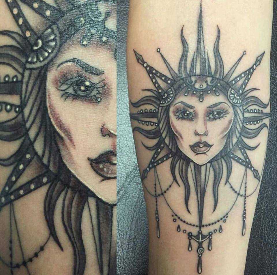 Сегодня большой популярностью пользуется эскиз тату черного солнца. Такую татуировку используют те, кто желает расширить свои мистические грани познания. Обычный славянский эскиз солнца (в простонародье «Солнцеворот») также пользуется большой популярностью и имеет огромное количество вариаций. Многие изображают солнце в комбинации со свастикой. Но сразу хотим отметить, что это не имеет ничего общего с фашизмом. Такое изображение обозначает древнеславянский знак Бога Солнца. Популярной сегодня является татуировка солнца в компании луны. Оригинальный вариант – когда в эскизе солнце частично перекрыто луной.