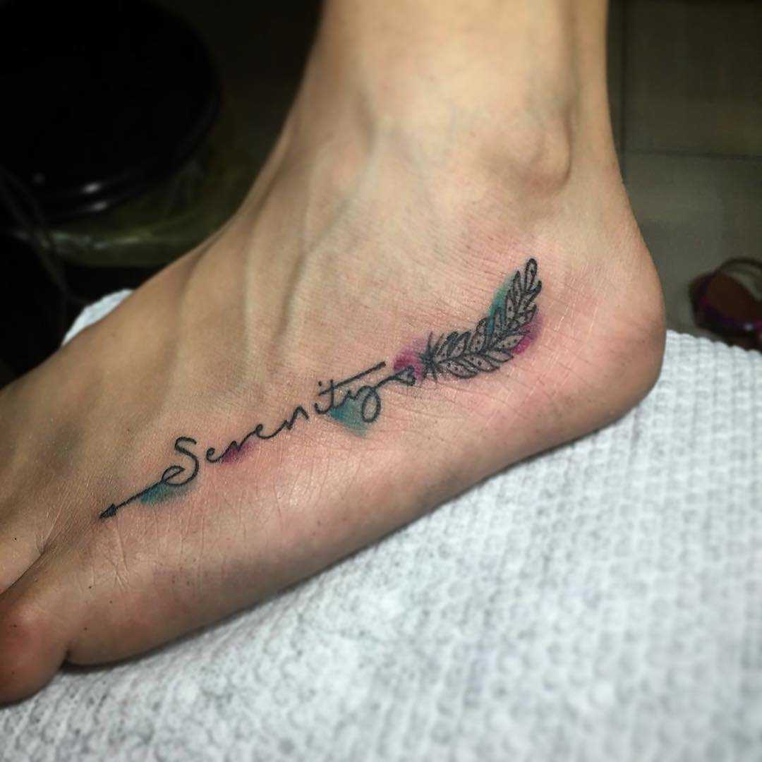 Фразы, выбитые на ноге, размещают на уровне заметном в изящных туфлях. Это придает образу женственности, утонченности и шарма;