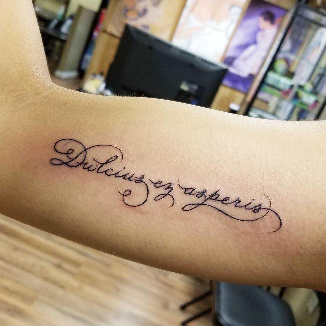 При необходимости тату надпись на латыни подновляют каждые несколько лет. Образцы работ представлены на фото в ниже, смотрим и наслаждаемся!