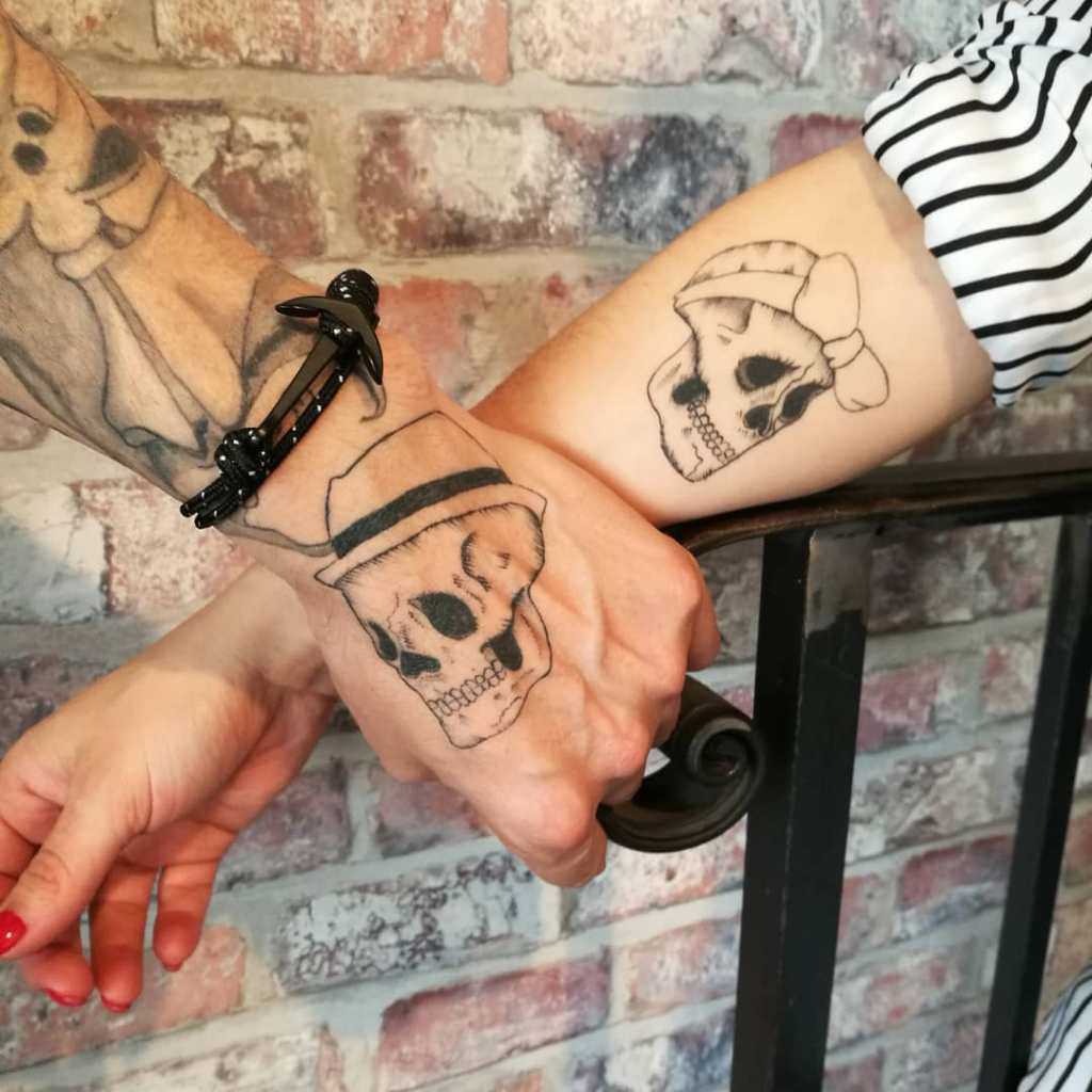 Многие пары делают одинаковые татуировки. Очень часто используется дата свадьбы, обозначения короля и королевы в виде императорских головных уборов или привычных изображений с колоды карт для карточных игр. Большая часть парных тату выражает чувства влюбленных. Очень актуальны эскизы в виде штрих-кодов, знаков бесконечности, линии кардиограмм. Большинство мастеров тату рекомендуют выбирать в качестве парных нательных рисунков общепринятые изображения. Жизнь может сыграть с вами злую шутку, и определенные обстоятельства вынудят вас расстаться. В таком случае соединяющиеся воедино татуировки будут абсолютно неуместными. Не стоит наносить имя партнера, которое в дальнейшем будет напоминать об отношениях. А вдруг воспоминания станут неприятными?