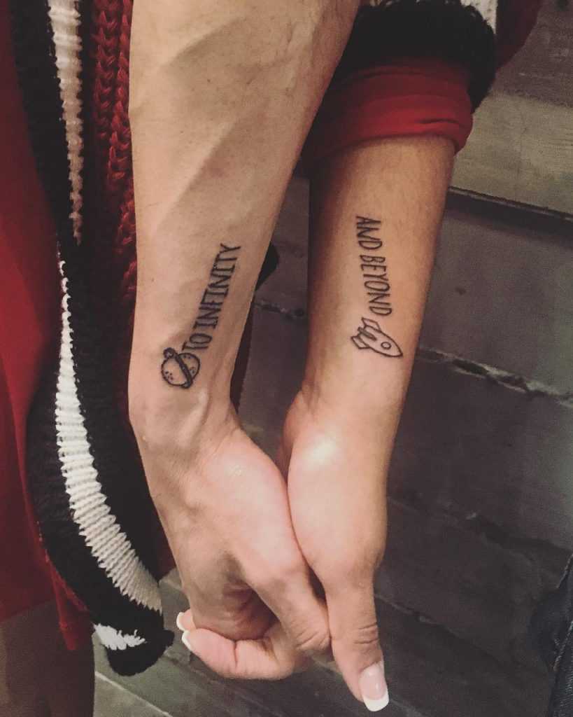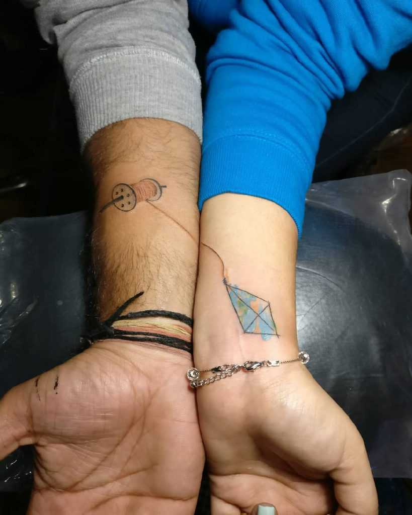 Запястье – одно из самых привлекательных мест для нанесения татуировки. В результате это отличный выбор для пар, которые хотят похвастаться своей любовью! Это небольшая площадь, поэтому любой дизайн, который вы выберете, должен быть миниатюрным и относительно простым. Многие пары выбирают произведения искусства, которые имеют смысл, когда вы держитесь за руки, например бумажный самолетик в полете, сердцебиение или кельтский узел. Имейте в виду, что татуировка на запястье может быть довольно болезненной из-за большого количества нервных окончаний под кожей. Так что будьте готовы пострадать за свою любовь!