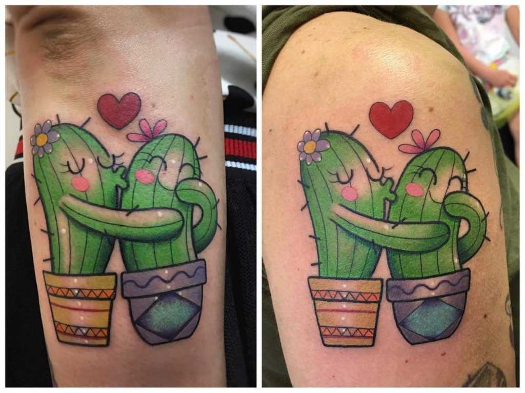 Изображения Котопса, героя современного мультфильма, набивают на тело молодые люди, считающие себя неразрывной частью своей второй половины. Участники такой пары смелые, амбициозные, не стесняющиеся своих чувств и не воспринимающие всерьез мнения окружающих о своих поступках. |