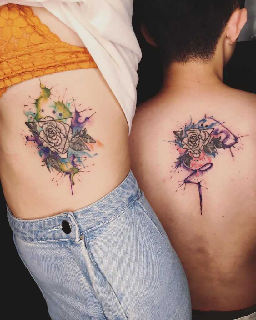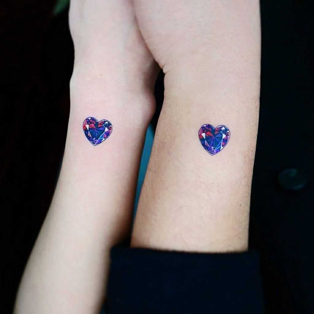 Это наиболее распространенный вариант парных татушек, который имеет множество версий и стилей. Вы можете выбрать как маленькие тату, так и более крупные рисунки с множеством деталей.