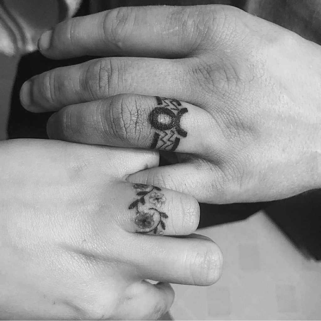 Одной из наиболее прославленных татуировок для супружеских пар является обручальное кольцо, наносимое на безымянные пальцы обоих партнеров. Вместо того, чтобы тратить огромные деньги на кольца с бриллиантами, пары могут нанести тату колец в качестве клятвы друг другу. Такие кольца не будут стоить целое состояние, их нельзя будет потерять или снять: они навсегда станут частью обоих партнеров.