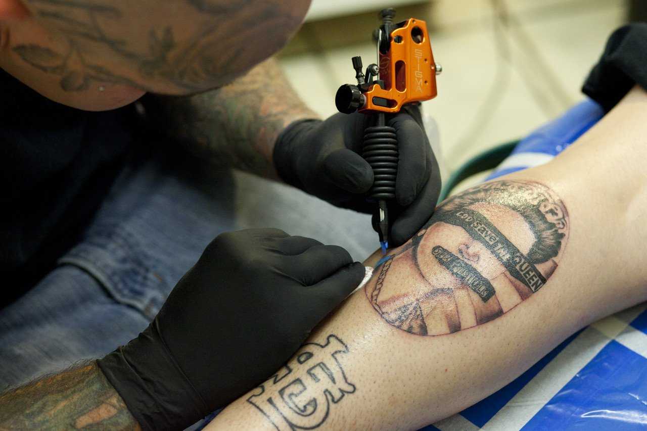 Граффити — это один из основных элементов пограничных татуировок. Такие татуировки могут иметь яркие и контрастные цвета, различные шрифты и элементы граффити-стиля, например, спреи, капли краски и линии.