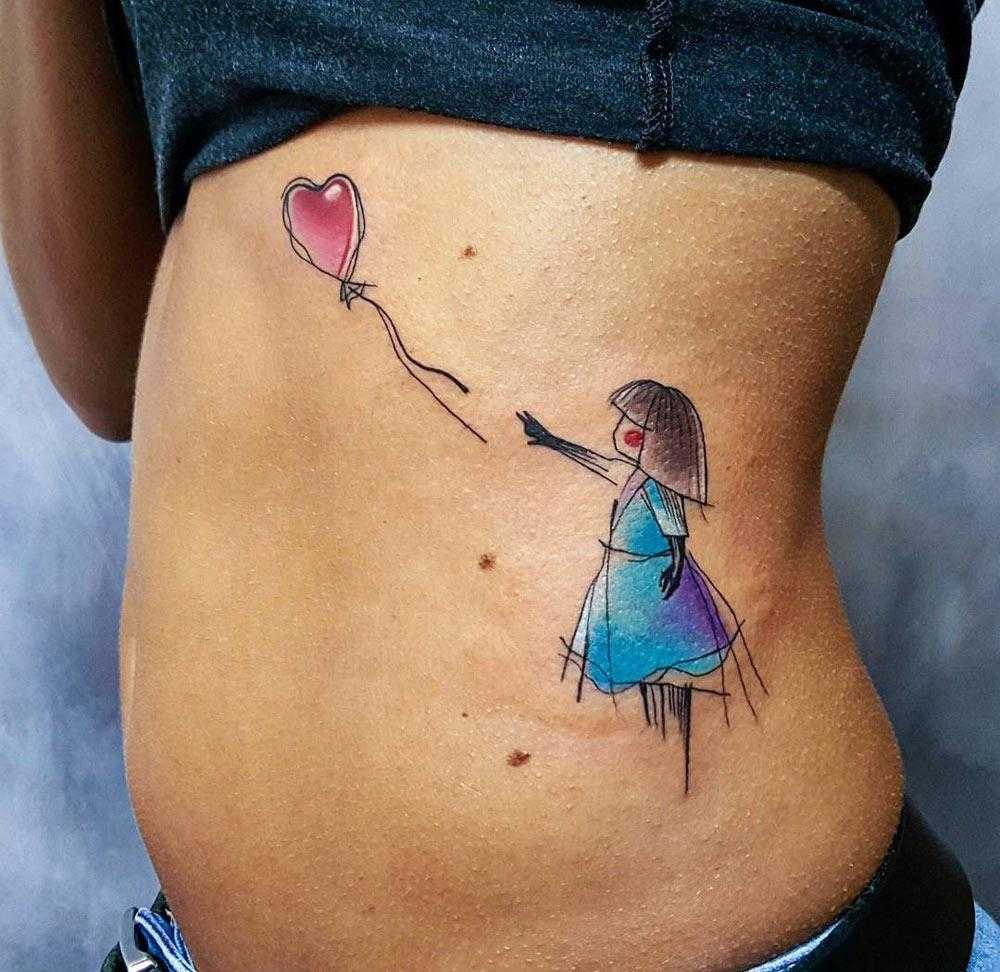 Тату на ребрах – это прям дитятко под сердцем. Сакральный рисунок можно набить в интимной зоне, куда не каждому дано попасть. Зато летом в раздельном купальнике можно открыть свое тело и покрасоваться. Но захватите на всякий случай еще и сдельный купальник, чтобы мамка ни о чем не узнала, а то на фотографиях с отдыха можно спалиться.