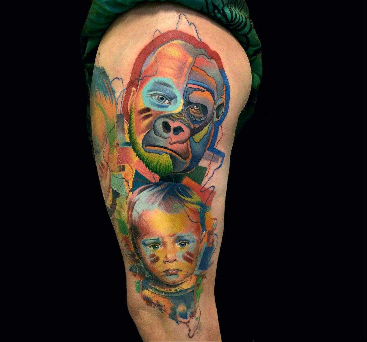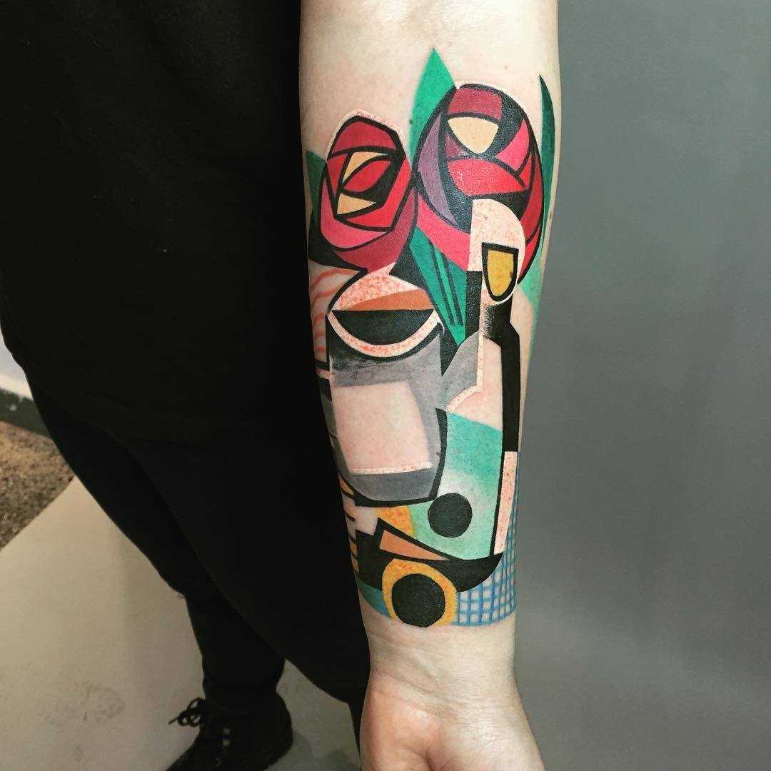 Главным преимуществом цветного тату является его броскость и возможность полностью выразить смысл и характер. Яркие контрастные цвета характерны для смелых, неординарных личностей со взрывным нравом и оптимистичной точкой зрения по жизни. Наиболее уместны яркие тона в технике акварель, реализм и треш-полька. Необычно и привлекательно выглядит полностью забитый рукав цветами или другими элементами, яркий цветок на какой-либо части тела. Очень часто встречается слияние стилей в очень красивом и ярком нательном рисунке. Цветные тату выполняют как мужская, так и женская половина.