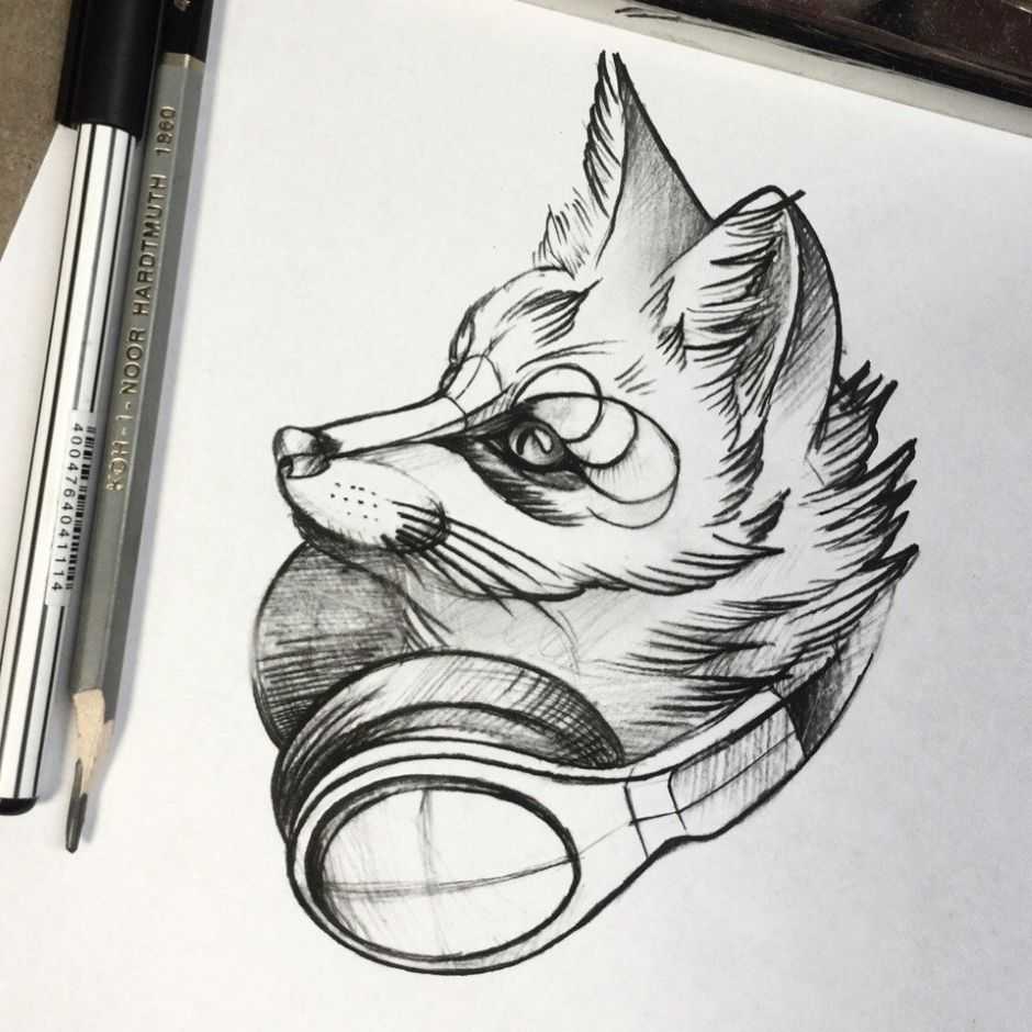 Для тех, кто не любит обилие красок, тоже есть варианты. Это тату лиса минимализм, гравюра, или графика. Такая черно белая лиса легко рисуется, и при этом стильно смотрится.