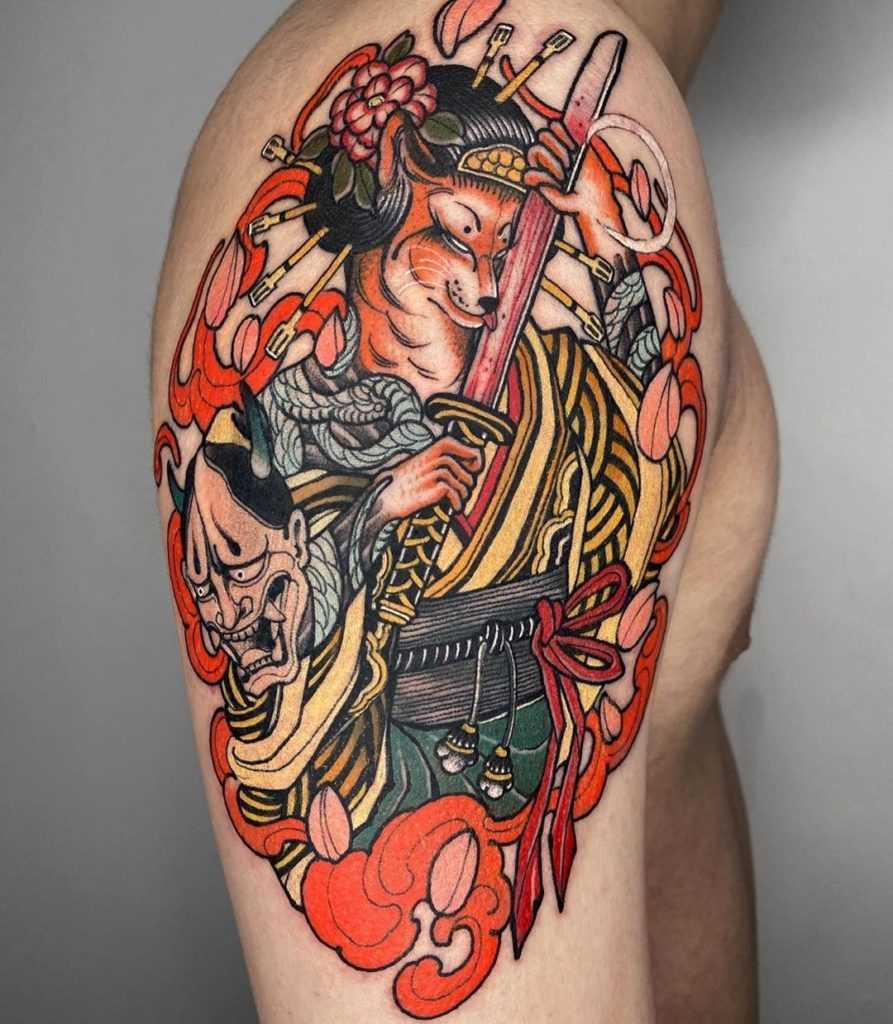 - Японцы верят, что лиса прислужник бога Инари (местный бог изобилия). В Японии можно встретить тату лиса у успешных бизнес-леди, а также девушек, которые хотят чтобы удача всегда сопутствовала им.