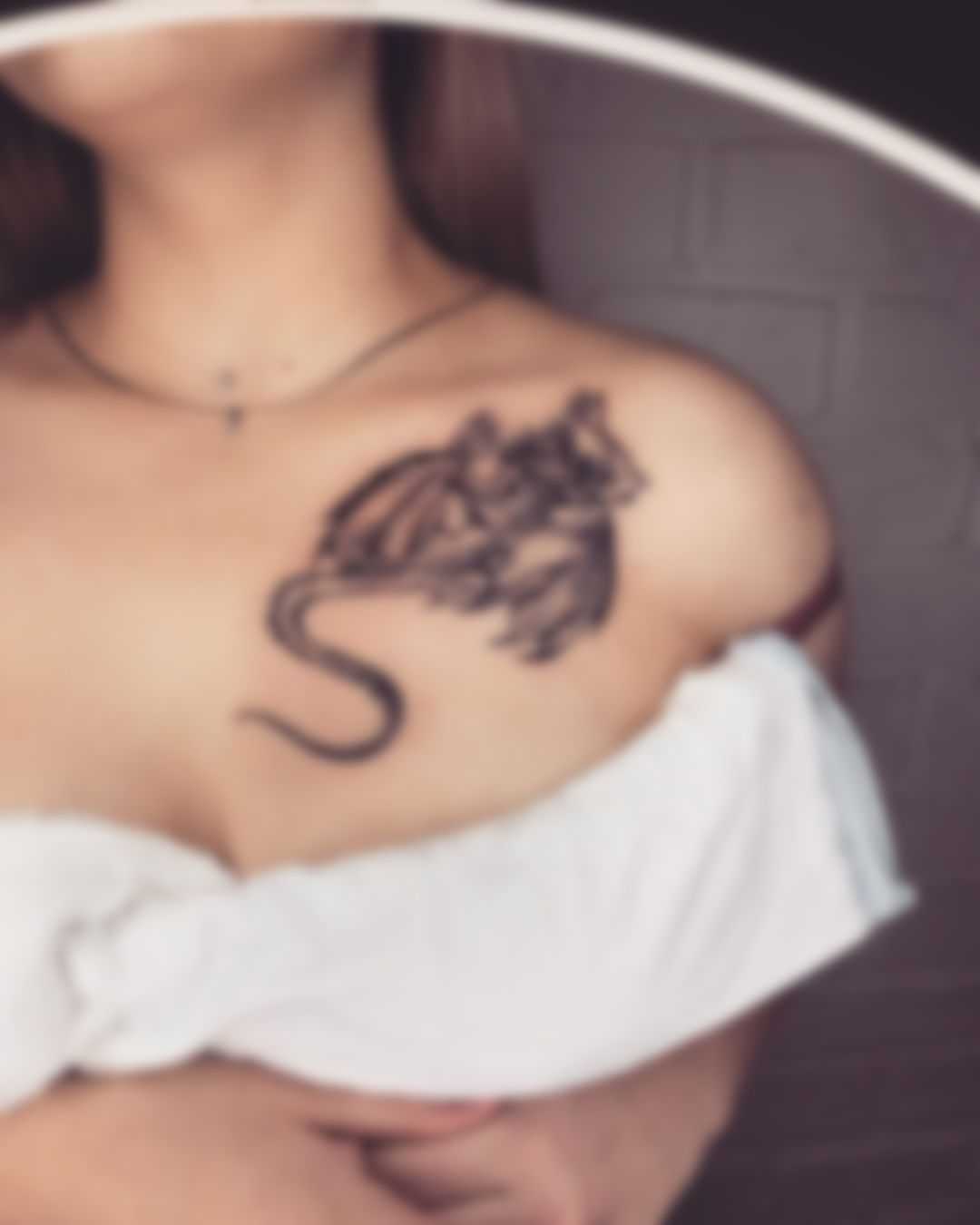 Тату в виде животного, птички тоже имеет определенный смысл. Она может быть символом характера девушки. К примеру, изображение кошечки — свидетельство ласкового, податливого, игривого нрава обладательницы.