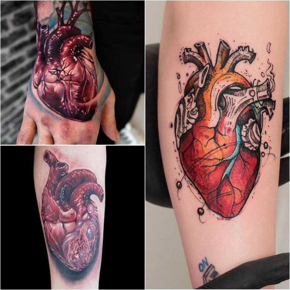 Анатомические рисунки встречаются не часто, их наносят только самые смелые и решительные люди. Несмотря на реалистичность символика сердца остается неизменной — мир чувственности, жизненная энергия, эмоции.