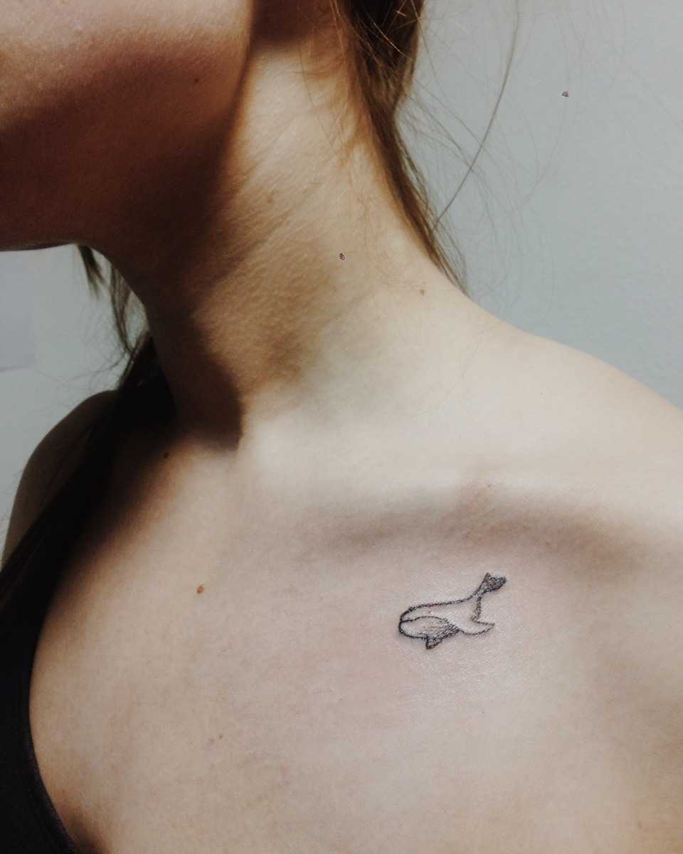 В качестве оригинальных тату на ключице используются маленькие рыбки, черепашки, птички.