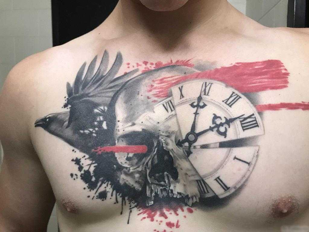Тату череп с часами: необычные нательные изображения