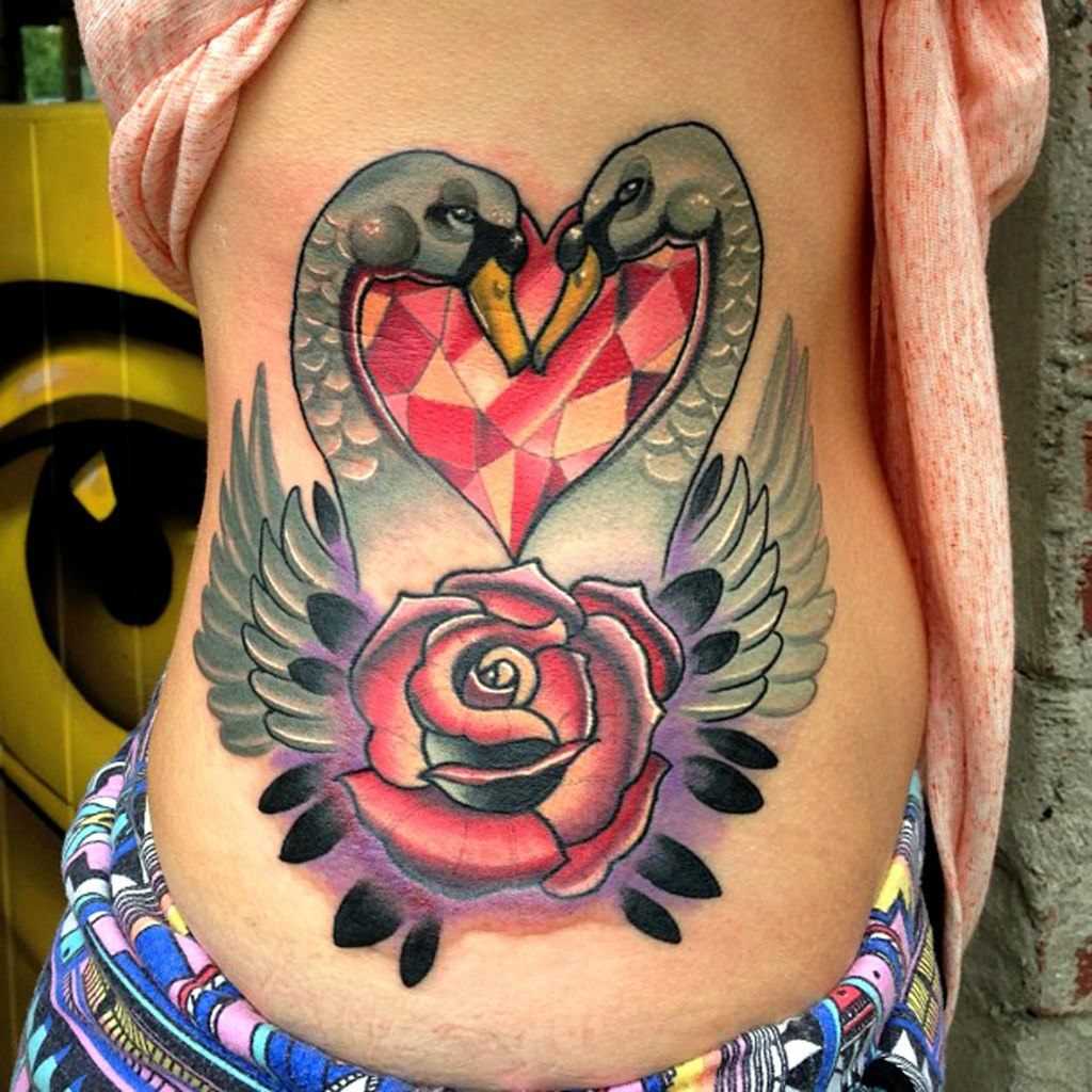 Дизайн выполнен таким образом, что плывущие навстречу друг другу лебеди в момент прикосновения образуют сердечко. Эти птицы считаются непоколебимым символом верности, верной и чистой любви. Сделав такую татуировку на своем теле, вы укрепите отношения со своей второй половинкой, защитите свою любовь от любых невзгод.
