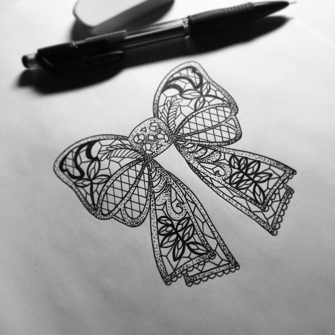 Существует множество разных эскизов тату с бантиком. Они представлены в разных цветовых оформлениях и стилях выполнения. Самыми распространенными эскизами среди любительниц милых бантиков являются изображения в виде зашнурованного корсета, затянутого бантиком. Такой рисунок является некой интерпретацией сущности женщин. Она выражает превосходство и совершенство женского тела. Очень гармонично выглядит бантик в сочетании с кружевом. При этом он может быть расположен на легком кружеве или же зарисованный нежными узорами. Очень часто выполняют эффект чулок, украшенных изящным бантом среднего размера. Это говорит о романтичности и страсти натуры. Нередко встречаются сочетания рисунка с надписью на иностранном языке. Но чаще всего текст служит самостоятельным элементом татуировки. Касаемо размера, то он может быть абсолютно разным, все зависит от личного желания девушки.