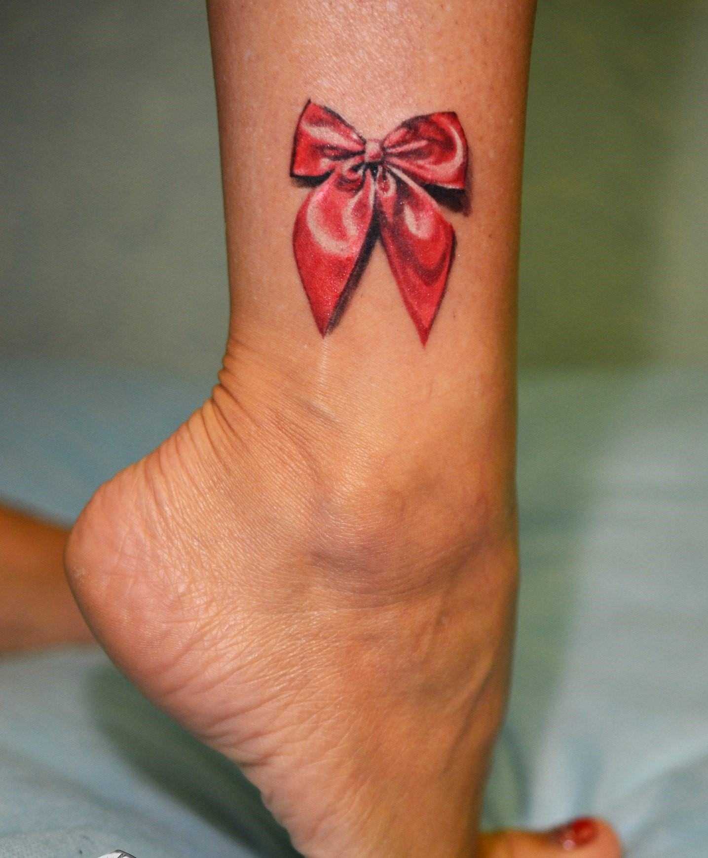 Милые бантики на ногах, бесспорно, привлекают достаточно много внимания. Такая татуировка будет выглядеть очень оригинально и смело. Не каждая девушка решится на такой шаг. Наиболее распространенный вариант нанесения бантиков — на внешней стороне стопы. Многие девушки предпочитают выполнять изящную шнуровку, закрепленную милым бантом на задней части икры, или же эффект повязки по всей ножке, украшенной сбоку милым аксессуаром. При нанесении татуировки следует помнить о следующих правилах: