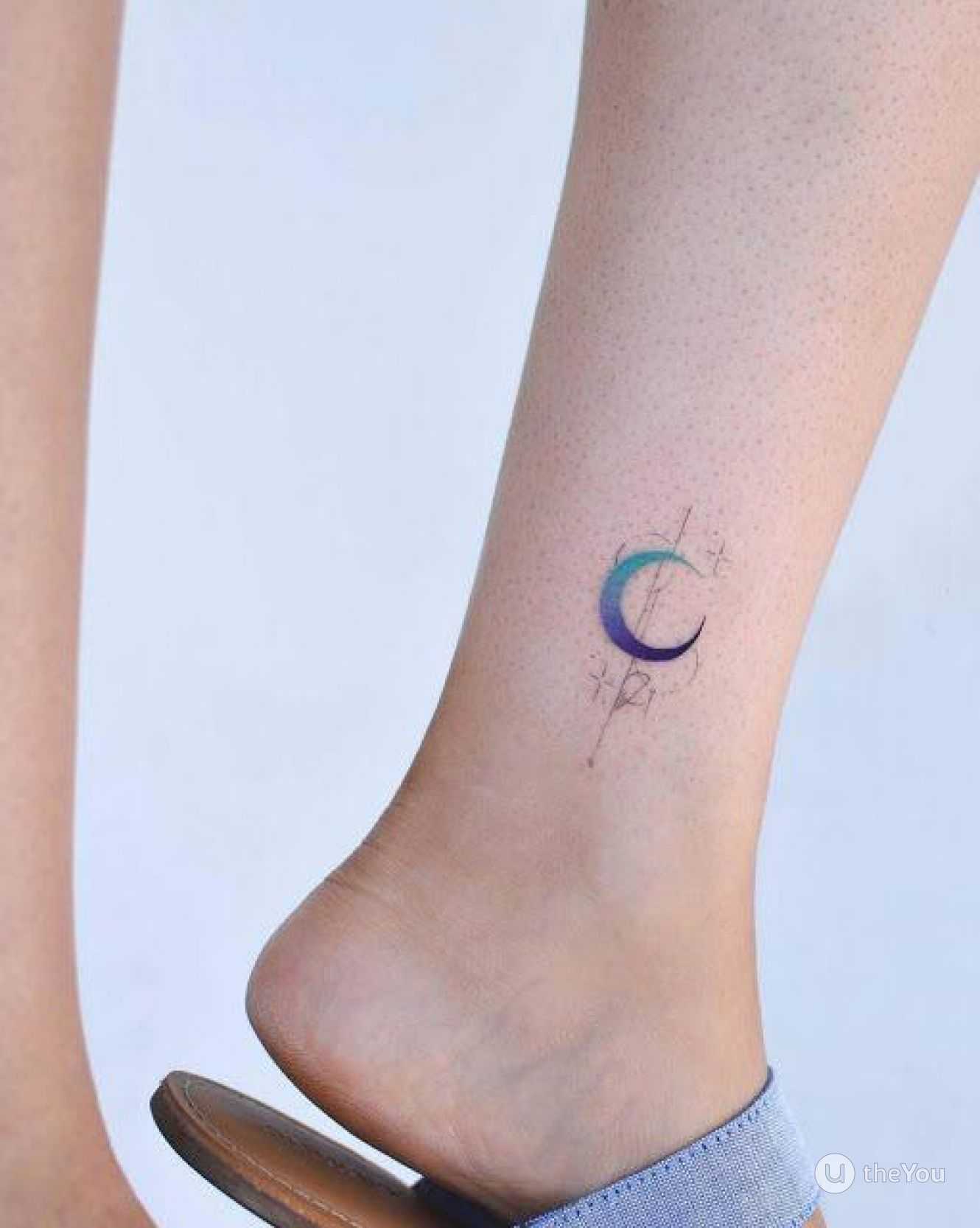 Звезды в виде тату никогда не выйдут из моды. Это может быть крупная звезда на бедре или целое созвездие на щиколотке. Такая тату говорит о женственности и мечтательности своей хозяйки.