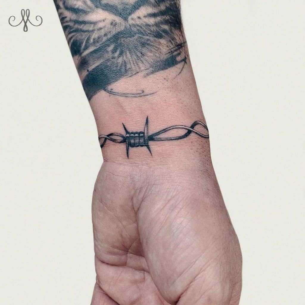 Тату браслет на руке мужские использовали как оберег. Такое значение получили благодаря форме замкнутого кольца. Нередко тату изображали в виде змея Уробороса, который кусает собственный хвост. Этот символ означает цикличность явлений, самодостаточность.