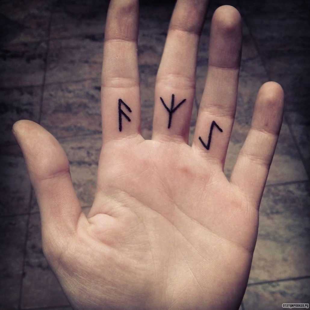 Надписи на пальцах, несмотря на свой миниатюрный вид могут обладать глубоким смысловым значением. Например, молодожены часто наносят имя супруга или кольцо на безымянный палец правой руки. У девушек можно встретить красивые сердечки, слова о любви или юмористичные изображения, например, усы на пальце. Мужчины набивают наколки из четырехбуквенных слов, например, «king», что в переводе с английского означает король. Также, широко распространены тату в виде точек.
