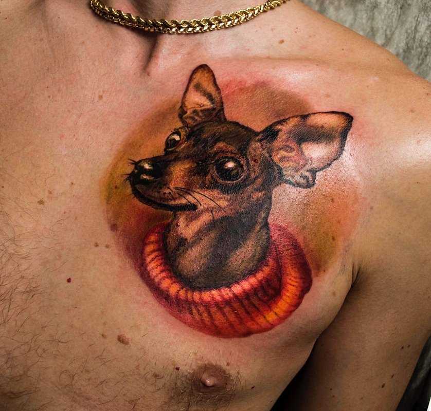 Стандартной областью для нанесения тату считается верхняя часть груди. На ней можно разместить объемное и симметричное изображение медведя.