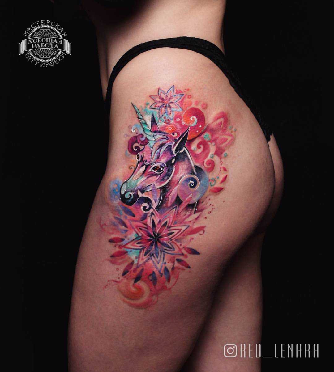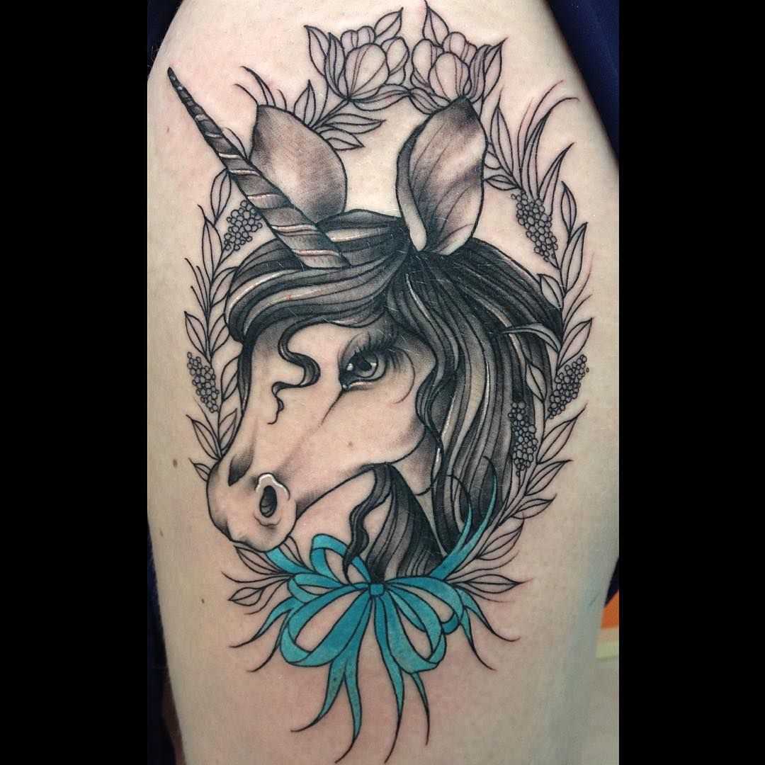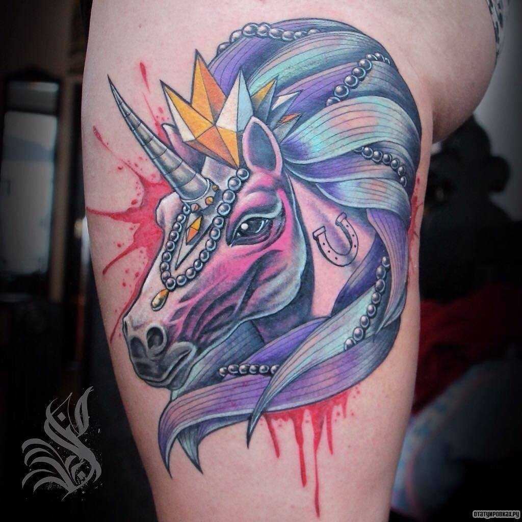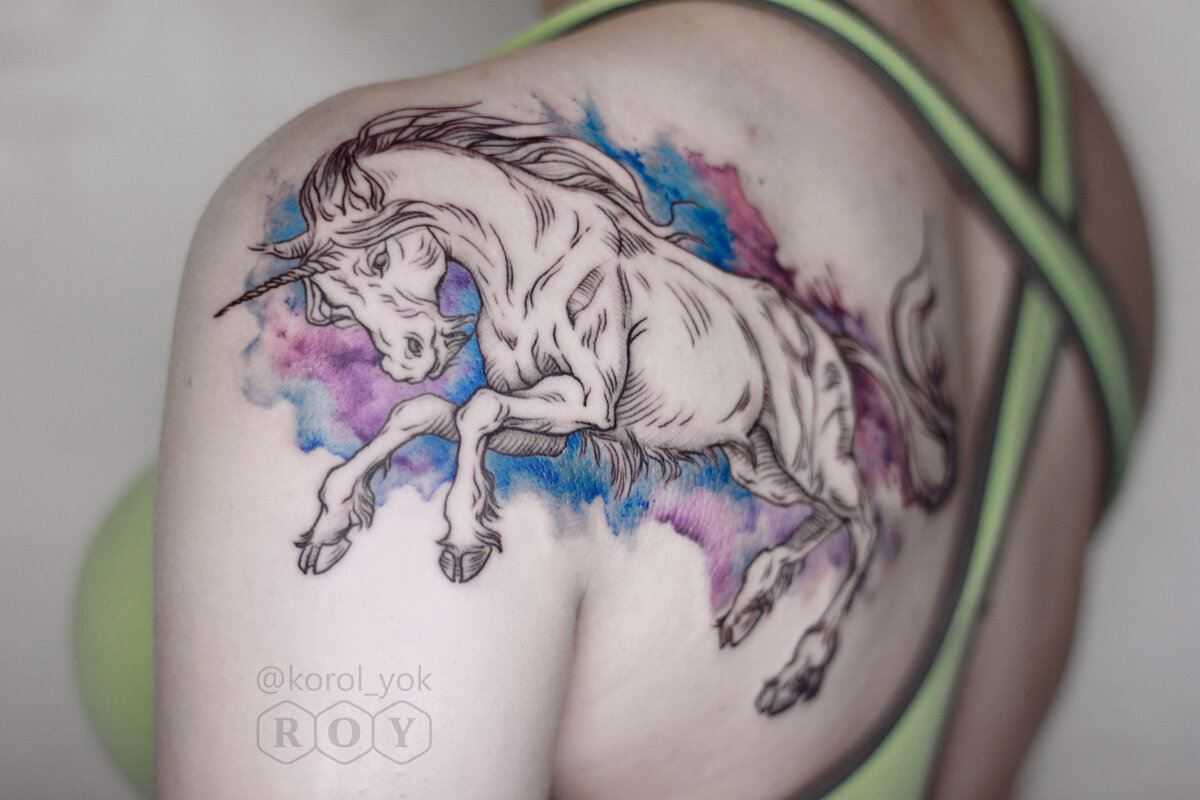Образы пегаса, в своем большинстве, применяются в женских татуировках. В общепринятом понимании – этот крылатый конь символизирует творчество и вдохновение. Такая трактовка, естественно, не исключает его изображений у мужчин. Но у них он чаще изображается с молниями. Что олицетворяет энергетику, мощь, главенство.