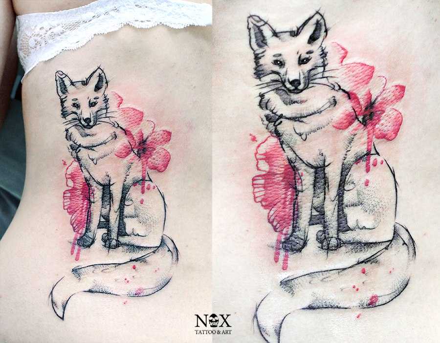 Смежный геометрическому, является стиль акварель, получивший огромную популярность у девушек. Выполнение по нему изображений животных представляет массу цветовых мазков, сливающихся в единую композицию.
