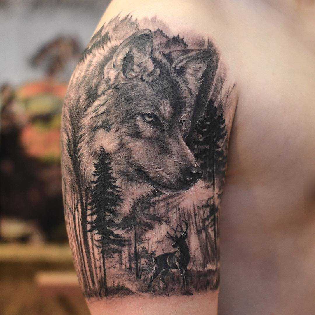 Тату Волк — это выбор умных, храбрых, стойких людей с действительно сильным характером. Во все времена люди из разных культур и народностей уважали этих животных. Современное искусство татуажа дает возможность как угодно изобразить благородного зверя: может быть с хищным оскалом, что говорит о бесстрашии и смелости; или воющим на луну, что сулит грядущие перемены.