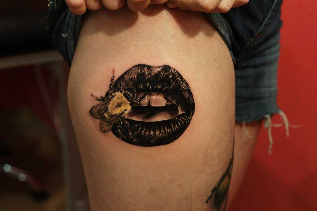 Второй тип нанесения татуировки минимализма сочетается со стилем реализма. Чаще всего это фотореалистичные изображения животных, птиц, насекомых или различных предметов, которые выглядят натурально.