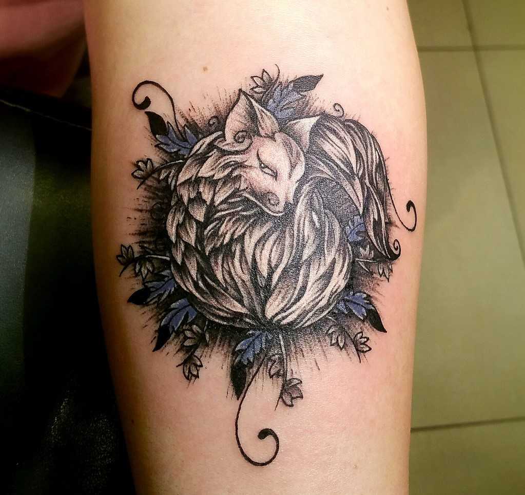 Также в интернете можно встретить множество эскизов, на которых животное изгибается и демонстрирует свою гибкость. Этот символ станет идеальным решением для девушки, стремящейся продемонстрировать свою сексуальность. Лисица, свернутая в клубок – женщина нуждается в тепле и ласке, проявляет слабость и уязвимость.