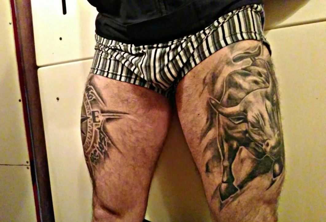 Также они активно используют область бедер, заполняя даже большие рисунки, составляющие целые текстуры или серию изображений, выполненных в едином стиле. Такие тату можно размещать как перед бедром, так и полностью закрывать ногу. Внутренняя часть бедра — довольно чувствительный участок тела, поэтому нанесение изображения здесь будет болезненным.