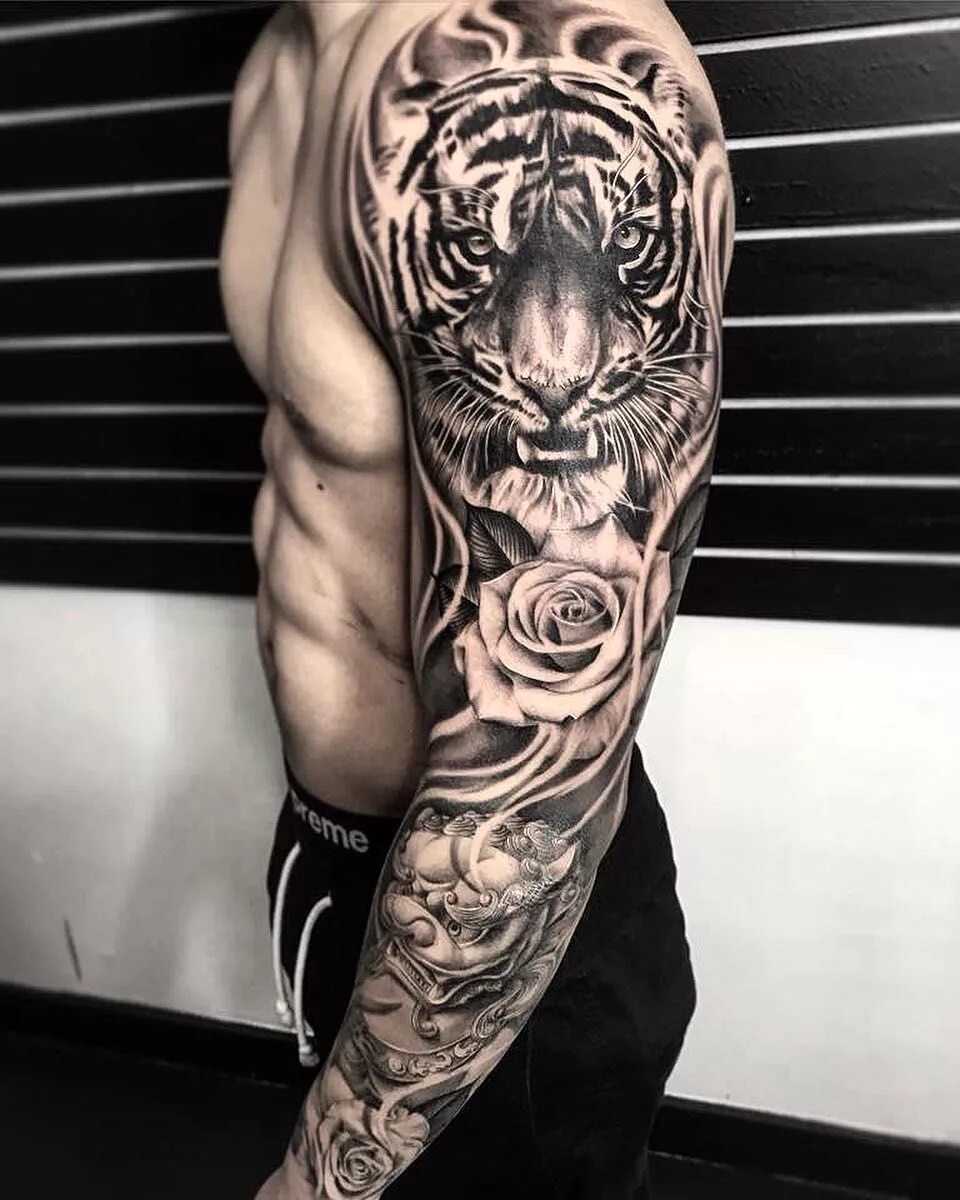 Традиционно мужчины выбирают для татуировки сильных и грозных животных. Это могут быть тигры, львы, волки, медведи. Или же это могут быть вымышленные животные — дракон, феникс. Конечно, при нанесении такой тату ее владелец заявляет о присущих ему свойствах. К примеру, изображение змеи говорит и мудрости и коварстве своего хозяина. Волк — не только символ силы, но еще и знак одиночества. На плече может быть изображение животного целиком или только его оскал.