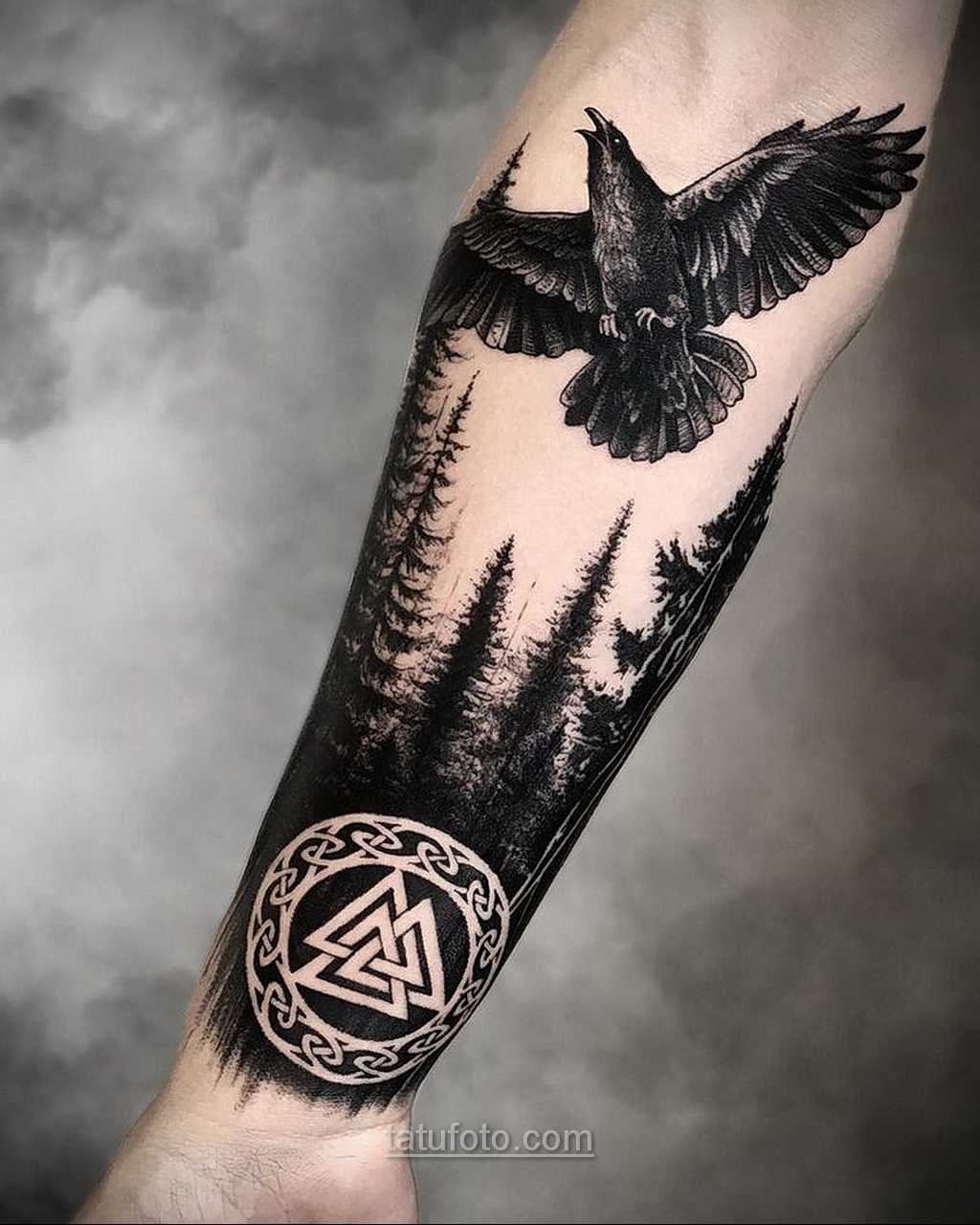 Лес — поиск жизненного пути. Как правило, такое тату выбирают люди, которые постоянно блуждают, ищут себя, сомневаются в верности выбора. Подобный оберег сможет помочь им обрести то, что нужно.