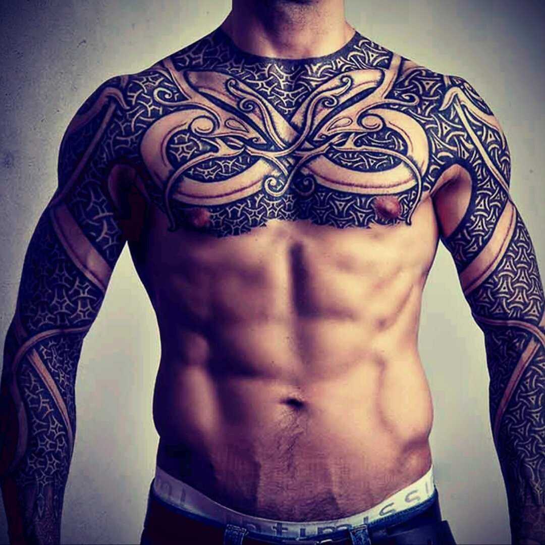 Абстрактные татуировки на плече мужские, фото которых тут, имеют очевидные плюсы перед остальными. Во-первых, вы можете начать с небольшого рисунка, а позже развить его до полноценного рукава. Во-вторых, в таком эскизе вы можете использовать различные мотивы орнаментов. Кельтские, славянские, японские узоры могут органично переплетаться в одном большом рисунке.