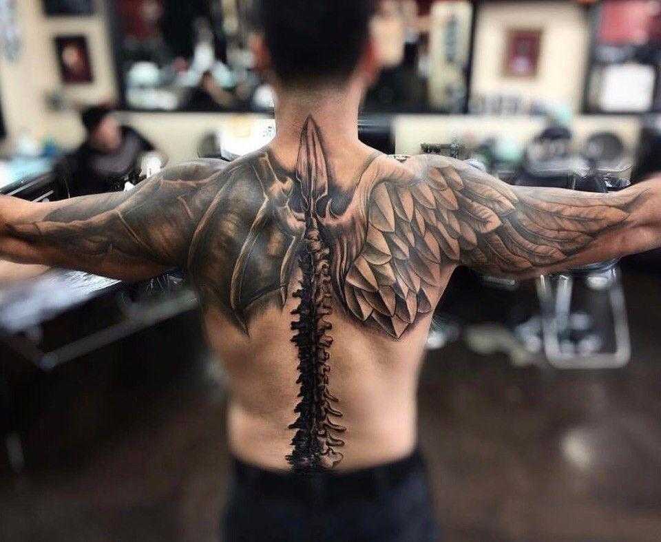 Тату на спине для мужчин считаются самыми выгодно расположенными. Их легко скрыть от глаз других людей, если это необходимо. А еще это практично и удобно из-за самой большой, плоской и почти безболезненной площади тела. Если не умеете терпеть боль, можно продумать варианты рисунков, которые не будут располагаться на позвоночнике. В остальные местах все не так чувствительно.