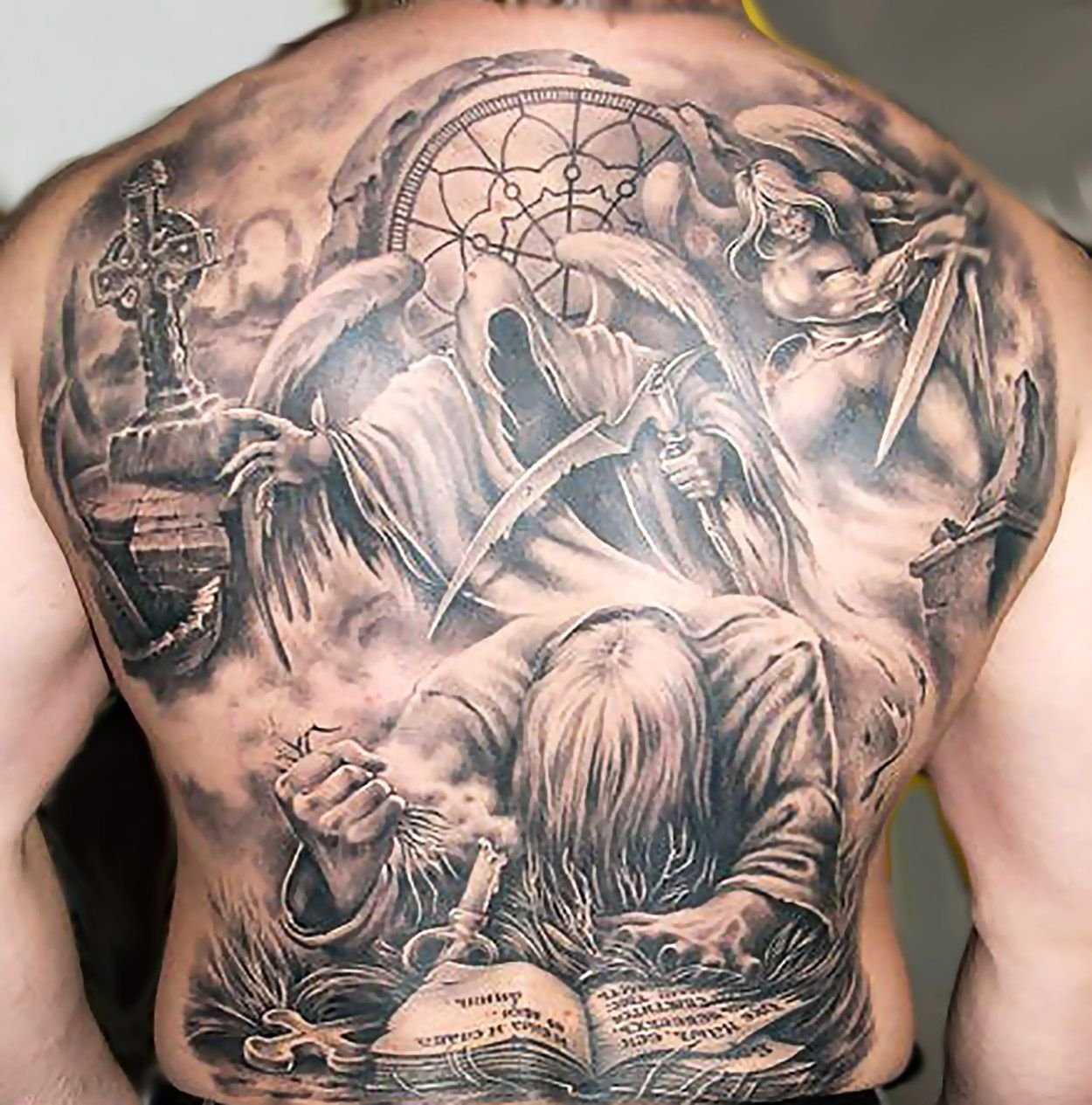 Отдельное место в нише тату на спине для мужчин занимают кельтские, славянские и скандинавские узоры. Их витые и геометрические линии отличаются большими размерами и могут переходить на другие части тела (руки, ноги). Какие-то из них являются символикой определенных богов, но это отдельная тема, требующая детального рассмотрения. Если разбираетесь в символах и читаете соответствующую литературу, легко сможете выбрать определенные защитные обереги, которые сложно потерять или испортить.