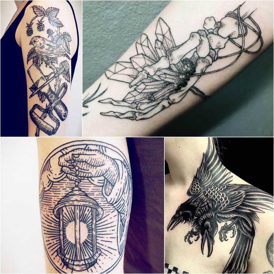 Женские Тату Гравюра — Эскизы Тату Гравюра для девушек